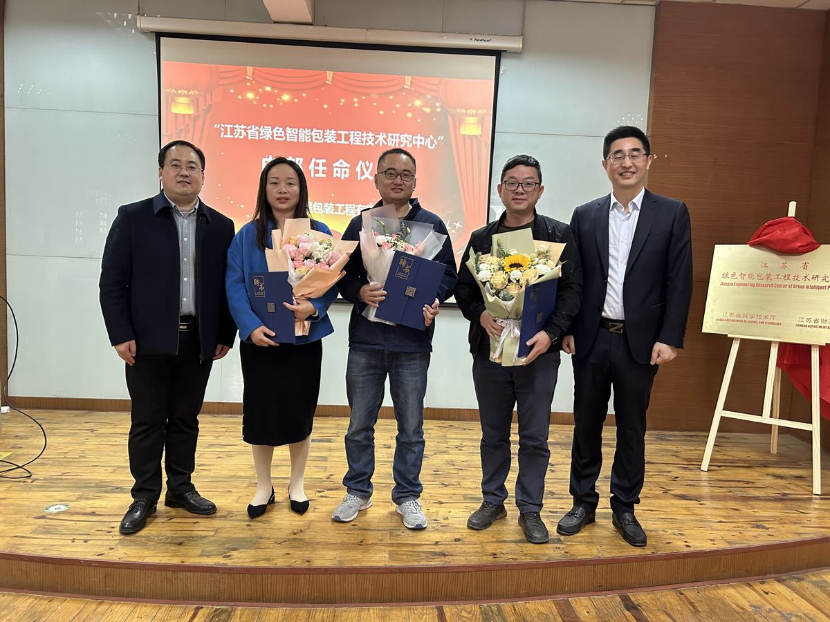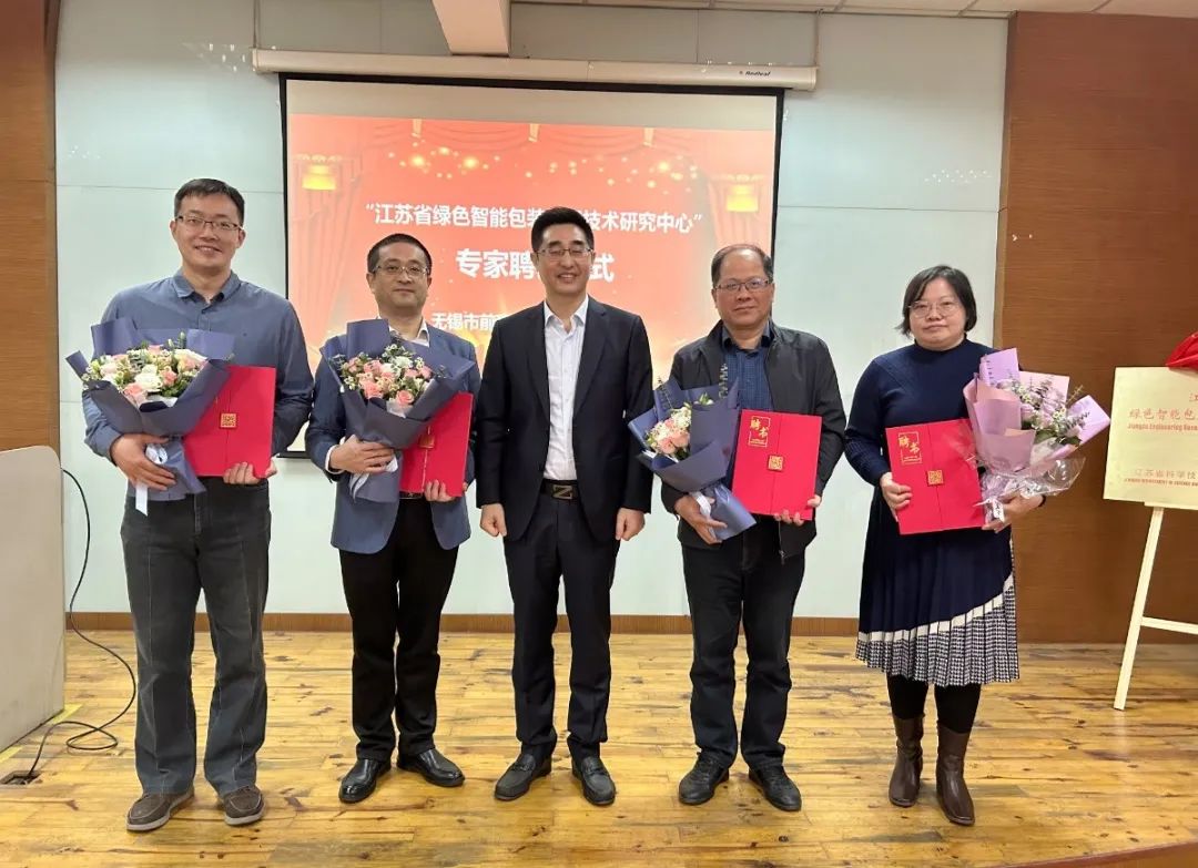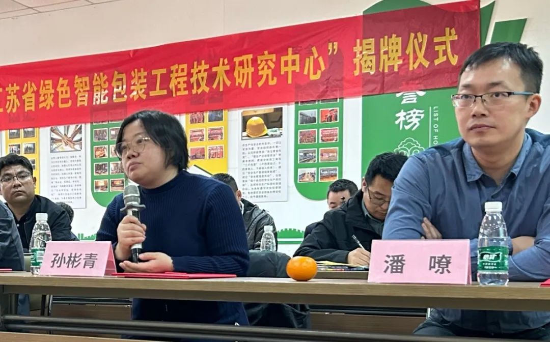 隨后徐穎總經(jīng)理與行業(yè)專家及教授們共同為“江蘇省綠色智能包裝工程技術(shù)研究中心”揭牌,并為專家教授團(tuán)隊(duì)及研究中心主要負(fù)責(zé)人授聘書。
