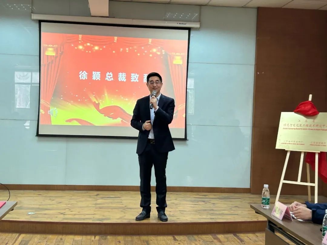 揭牌儀式上徐穎總經(jīng)理致辭,他表示,綠色化發(fā)展,塑造包裝行業(yè)智能化生態(tài)圈已成為市場發(fā)展趨勢,這是綠色智能包裝工程技術(shù)研究中心建設(shè)的初衷,也是我們企業(yè)使命索然,為客戶節(jié)約成本,并實(shí)現(xiàn)綠色低碳循環(huán),助推現(xiàn)代物流高效發(fā)展,為公司高質(zhì)量發(fā)展打好基礎(chǔ)。徐總同時(shí)也對技術(shù)團(tuán)隊(duì)寄予更高期望,希望研究中心要做好人才儲(chǔ)備、技術(shù)平臺(tái)建設(shè),加強(qiáng)與高校研發(fā)機(jī)構(gòu)聯(lián)動(dòng)。最后相信在行業(yè)專家教授們的加持下,在公司各部門的配合下,研究中心在工業(yè)包裝綠色智能發(fā)展道路上取得新的技術(shù)突破,能夠反哺客戶。
